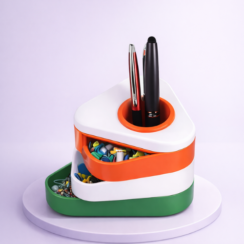 Tricolor Pen Stand With Sliding Drawer