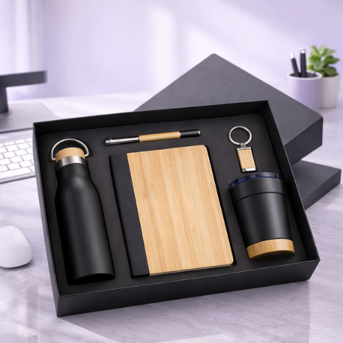 Premium Bamboo & Black Executive Corporate Gift Set